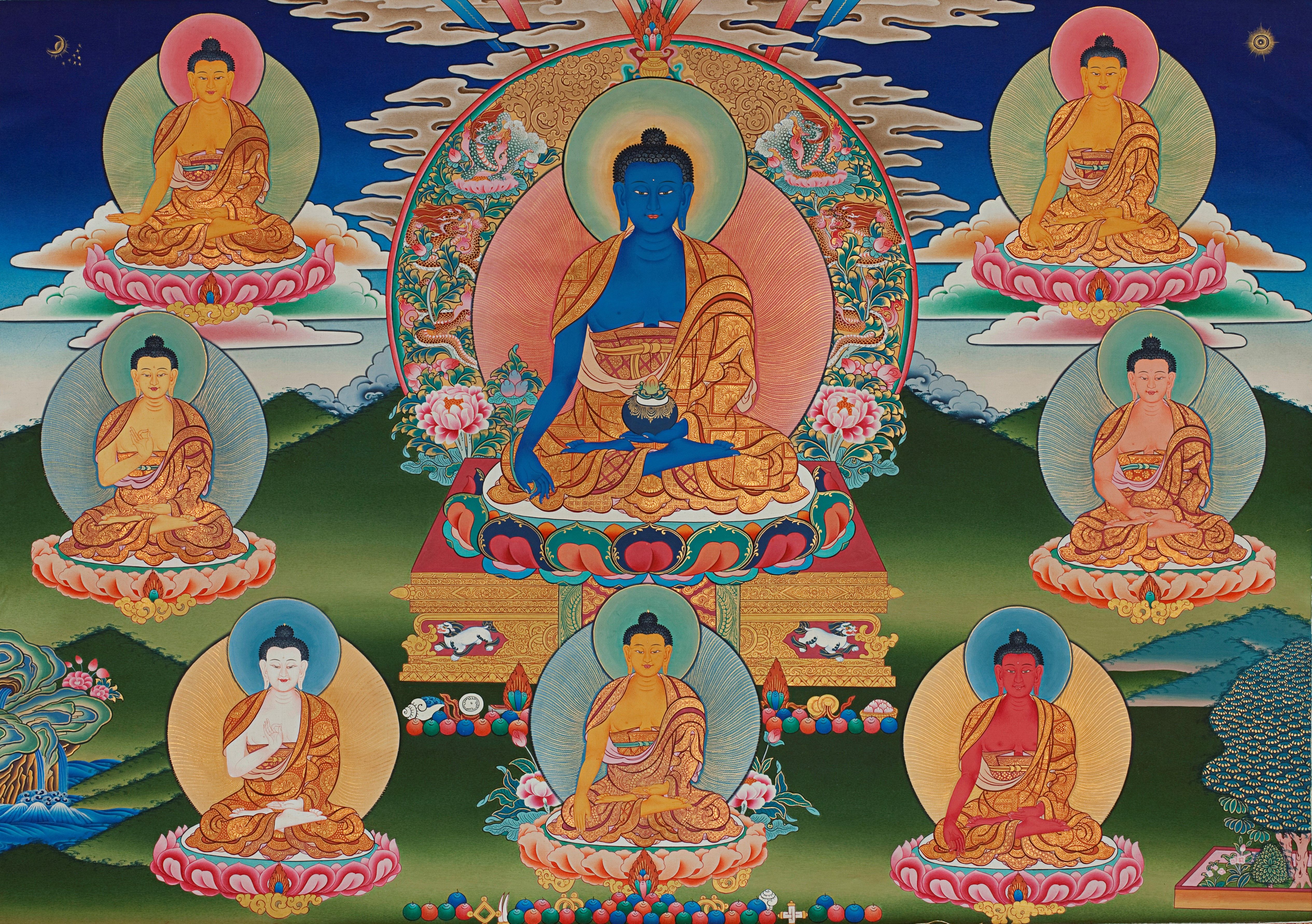 The First Doctor: Medicine Buddha Bhaisajyaguru is the Buddha for healing who vowed to help heal all the sick and the injured, and is often called upon to help eliminate sickness.