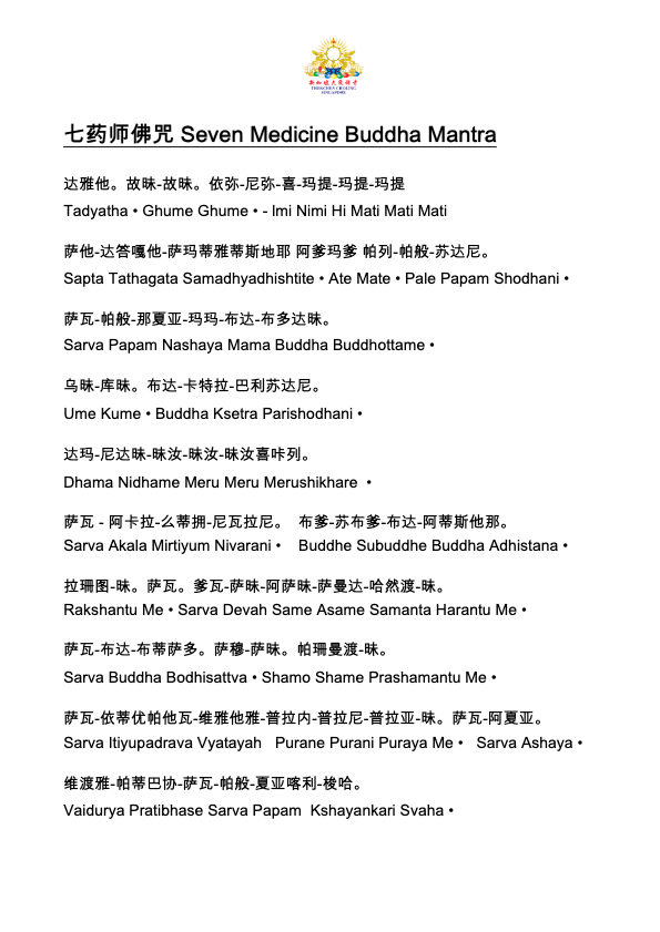 Seven Medicine Buddha Mantra (Eng & Chi)